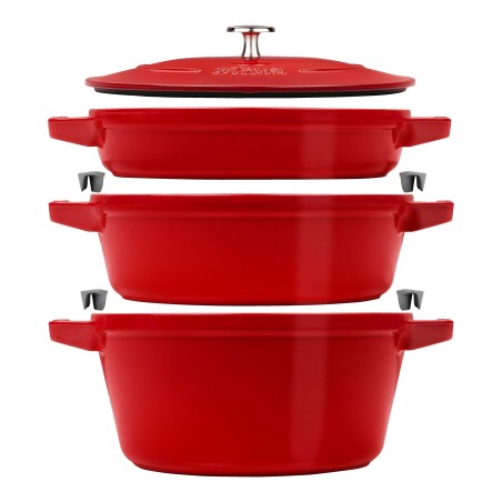 La cocotte en fonte 26 cm permet de cuire lentement vos plats, conserve la chaleur même à feu doux et convient à tous les feux, y compris l’induction et le four.
