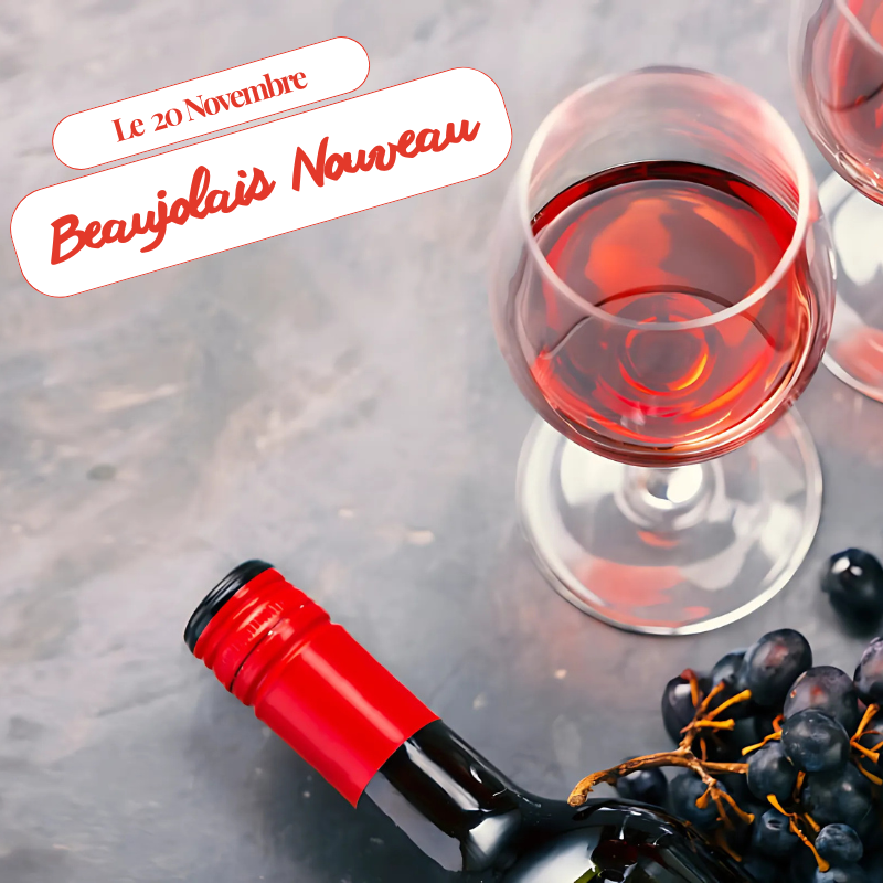 🍷 Le Beaujolais arrive le 20 novembre, un moment de fête, de partage et de convivialité ! Entre amis ou en famille, c’est l’occasion de trinquer et de savourer l’ambiance unique de cette journée.