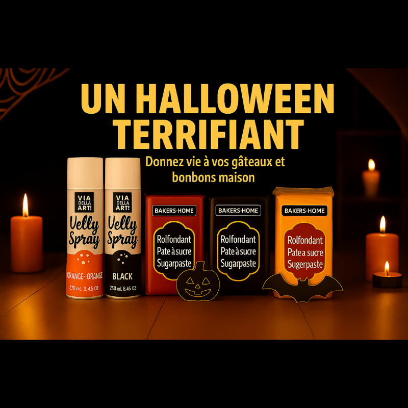 Avec les Spray velours orange & noir et les pâtes à sucre Bakers Home, Nos découpoirs Halloween ,donne vie à des créations gourmandes et effrayantes ! 🍬🧁