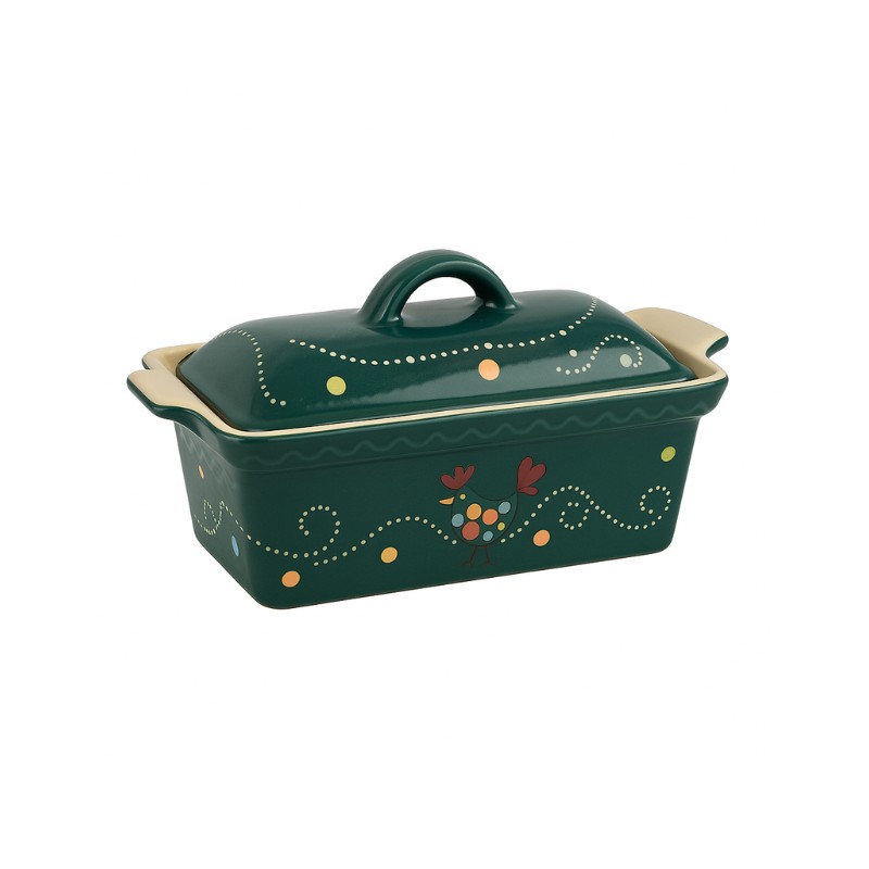 Elle est parfaite pour cuisiner une terrine de volaille aux herbes ou un foie gras aux figues. Le décor Cocotte, combiné au vert printanier, lui donne un air champêtre qui s’invite aussi bien à Pâques qu’à un repas du dimanche entre amis.